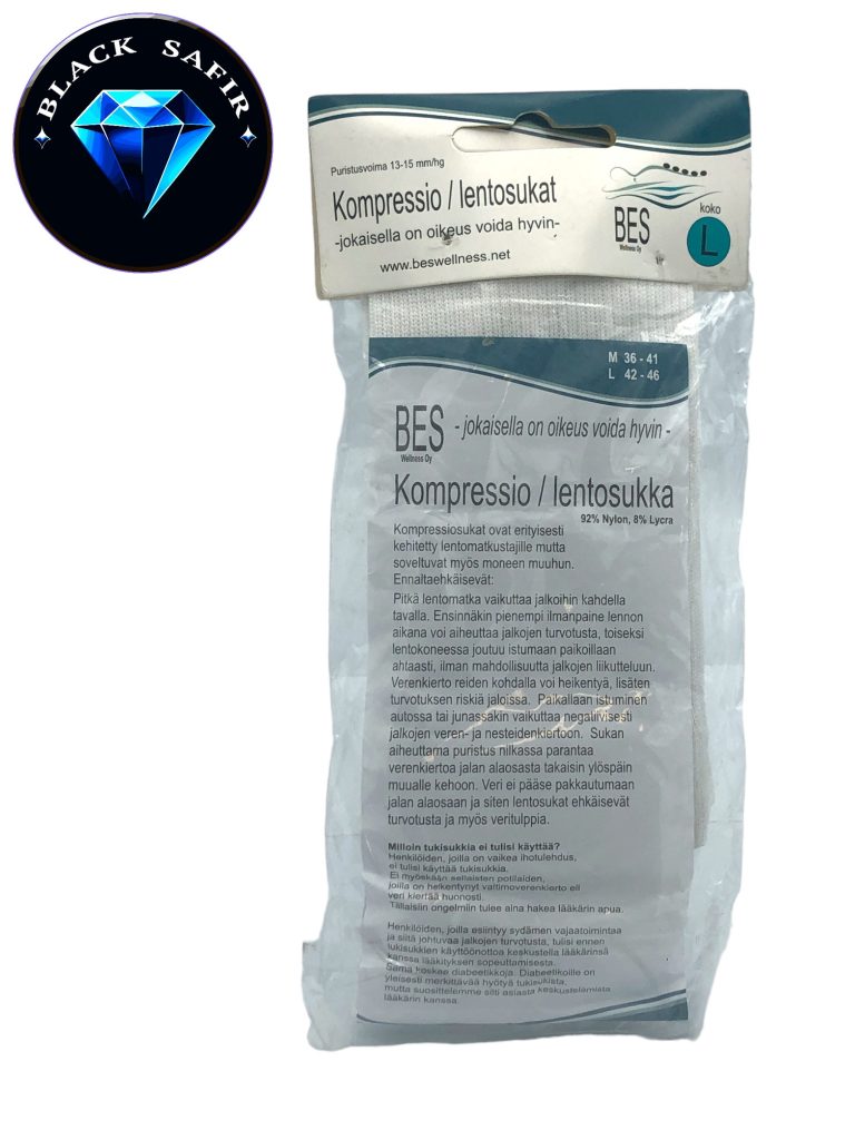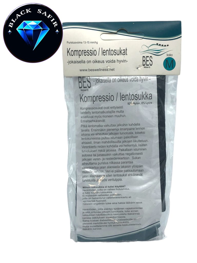 Black Safirin kompressio- ja lentosukat tarjoavat täydellisen yhdistelmän tyyliä, mukavuutta ja tukea. Olipa kyse pitkistä lennoista, seisomatyöstä tai aktiivisista harrastuksista, nämä sukat auttavat sinua jaksamaan paremmin ja vähentävät jalkojen väsymistä ja turvotusta.